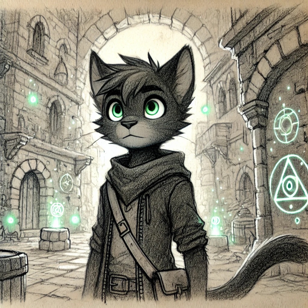 Nacido en la mística ciudad de Felis, Kuro siempre estuvo rodeado de leyendas y magia. Desde joven, mostró un talento especial para las artes antiguas y el sigilo, cualidades que lo convirtieron en uno de los exploradores más respetados de su pueblo. Pero su destino cambió cuando un pergamino olvidado reveló la existencia de la Llave del Umbral Perdido. Desde entonces, Kuro ha seguido cada pista y enfrentado innumerables peligros en su búsqueda para encontrarla y proteger su mundo.